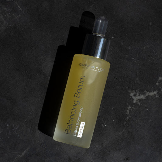 Dermatude heeft verschillende huidverzorgingslijnen welke ieder gericht is op andere huidtypes en huidproblemen. Voor een vette huid zonder veel onzuiverheden, zoals puistjes en mee-eters, kun je het Hydrating Serum en de bijbehorende Hydrating Cream gebruiken. Deze huidproducten zijn gericht op het verbeteren van het vochtbindende vermogen van de huid. Ze geven een anti-ageing en matterend effect. Voor de vette huid met onzuiverheden en onregelmatigheden, raden wij het Balancing Serum en de aanvullende Balancing Cream aan. Deze huidverzorgingsproducten focussen op het terug in balans brengen van de huid met een frisse, gelijkmatige teint. Ook bevorderen ze de cel vernieuwing en voorkomen ze onzuiverheden.